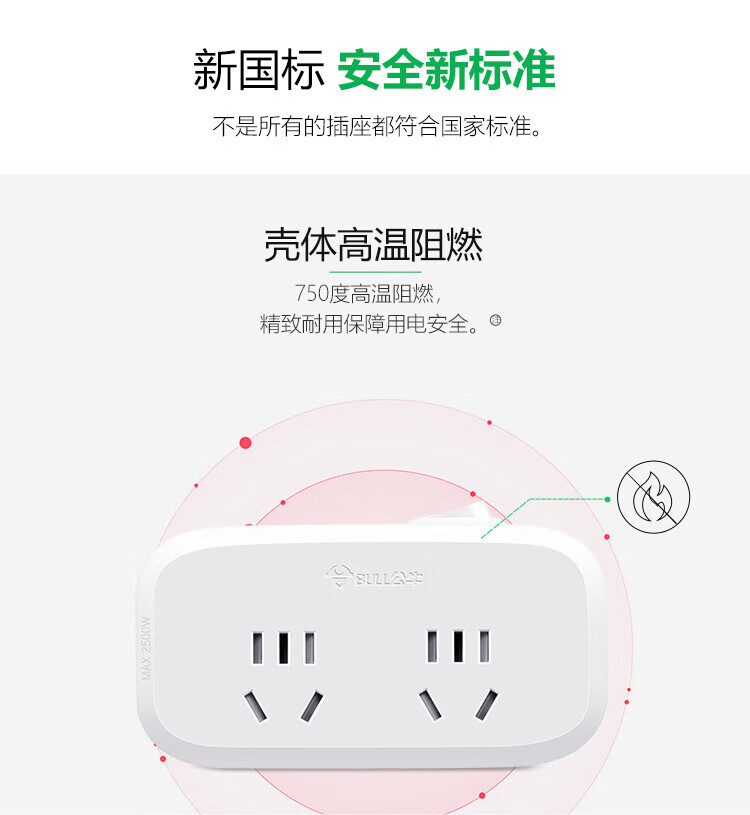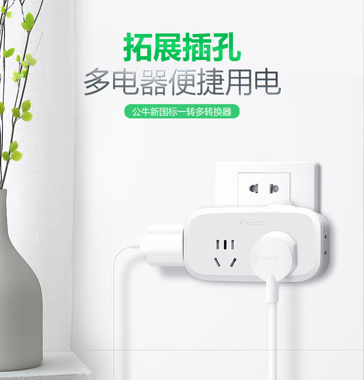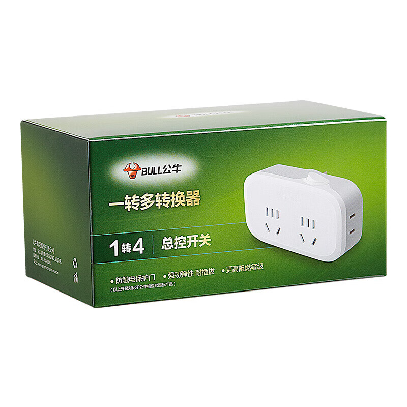 公牛(BULL)GN-934K 转换插头/一转四插座/转换插座/转换插座/转换器/电源转换器 4位总控