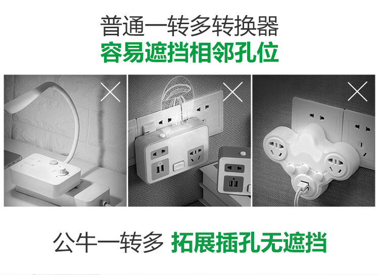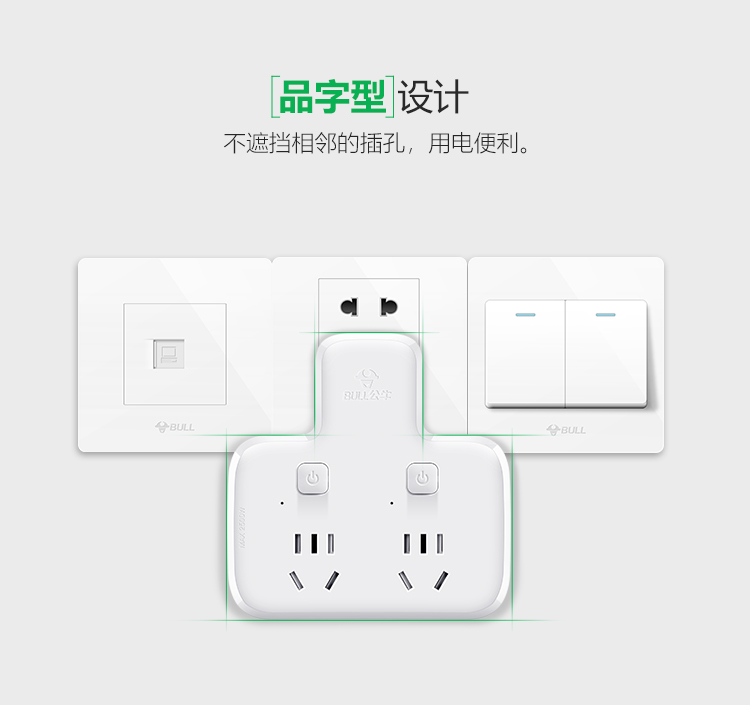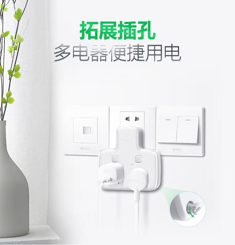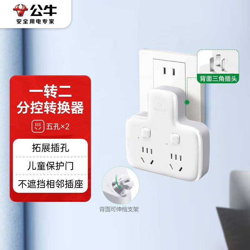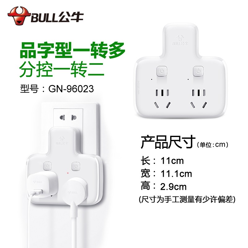 公牛(BULL)GN-96023 转换插头/品字形一转二插座/无线转换插座/电源转换器 2位分控插座