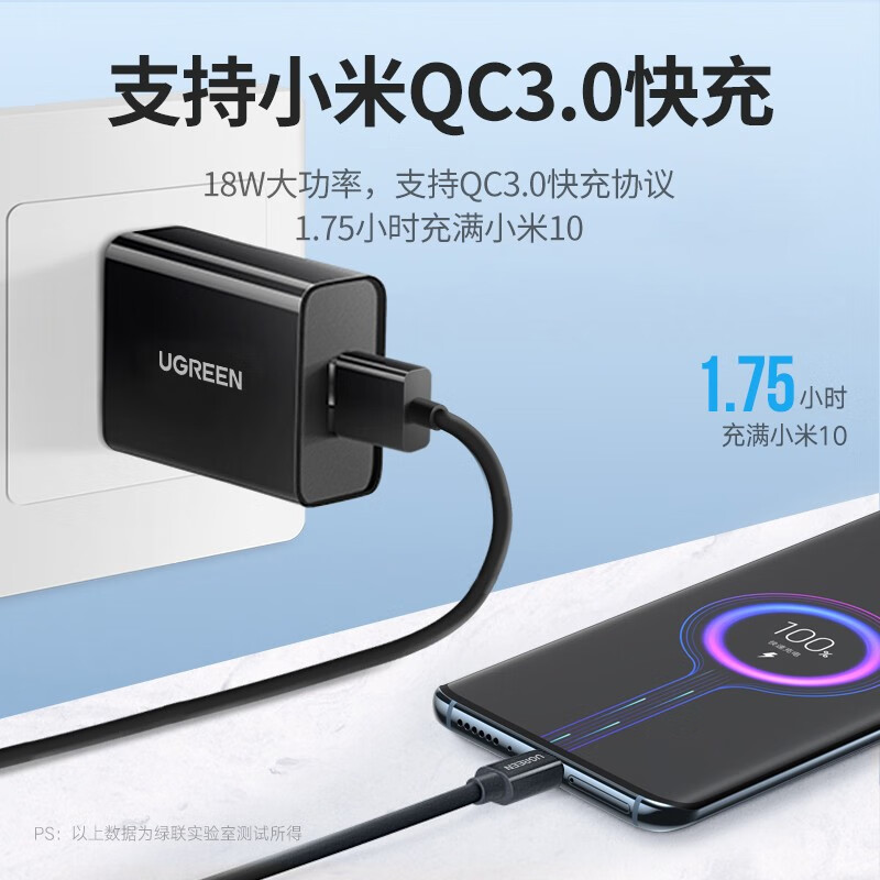 当前位置: 首页 > 电脑数码 > 绿联qc3.0充电器USB插座头18w快充头 40407【18W直充黑】