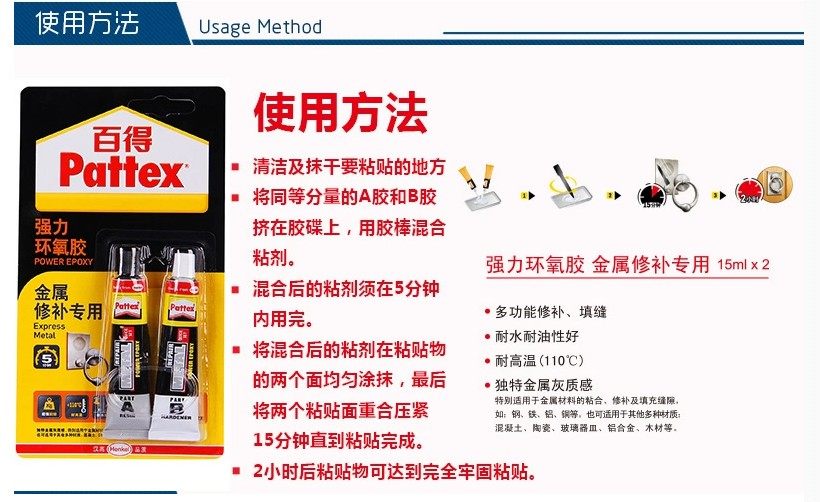 当前位置: 首页 > 办公文具 > 德国汉高百得强力混合胶 修补钢铁 金属AB胶水 树脂胶 30ml